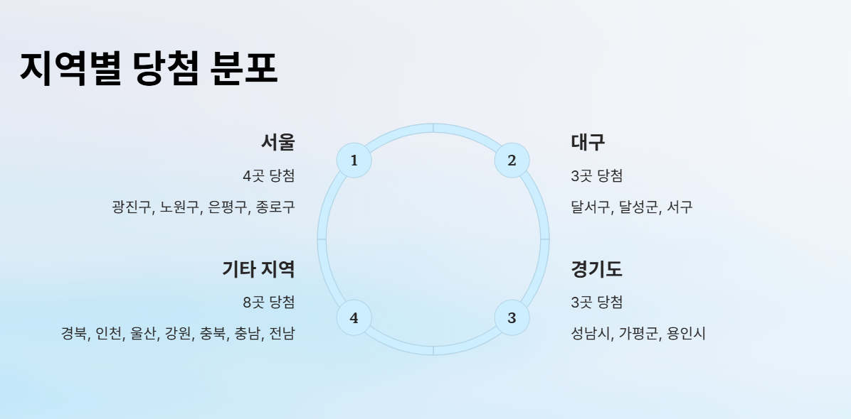 이렇게 보니, 정말 전국 곳곳에서 골고루 당첨자가 나왔네요.