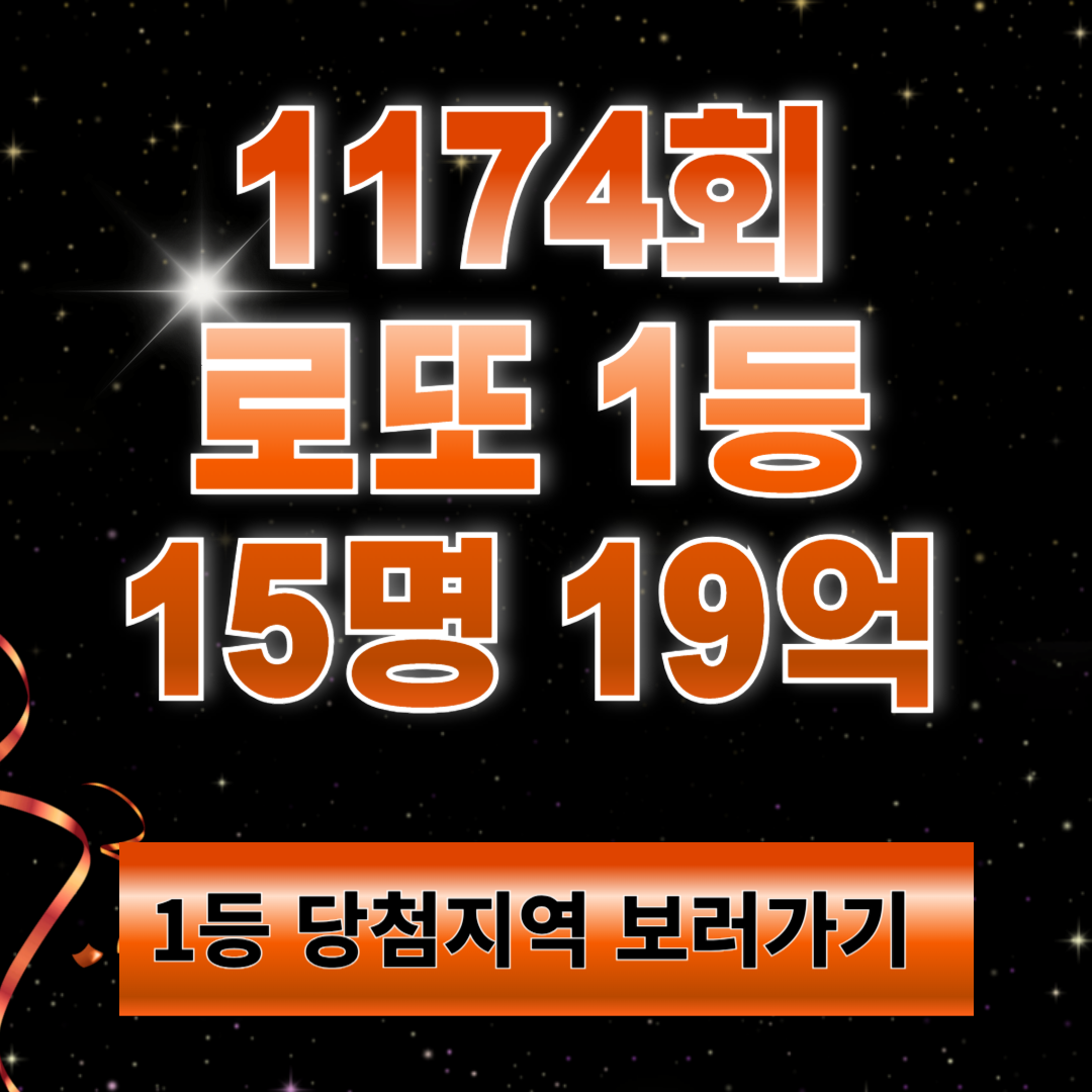로또1174회 당첨번호 당첨지역 1등당첨자 15명 19억