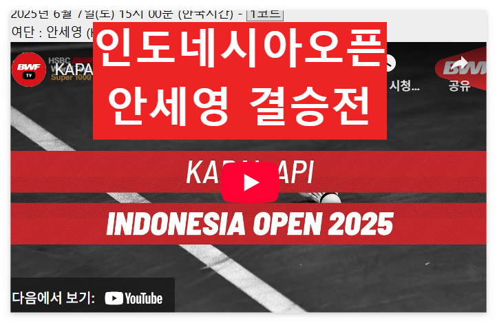 이번 2025 인도네시아오픈은 BWF 월드투어 중 가장 권위 있는 슈퍼 1000급 대회 중 하나로, 올림픽 랭킹 포인트와 함께 세계 최정상 선수들이 총출동하는 빅이벤트입니다. 특히 이번 대회에서는 한국 선수들의 맹활약이 돋보였는데요.