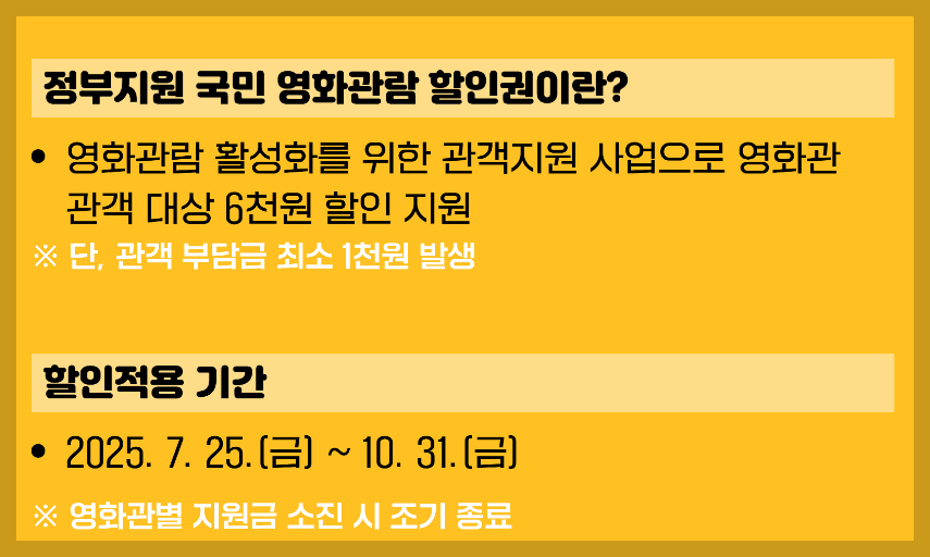 정부가 전국 영화관에서 사용할 수 있는 6,000원 할인권을 제공하고 있습니다.