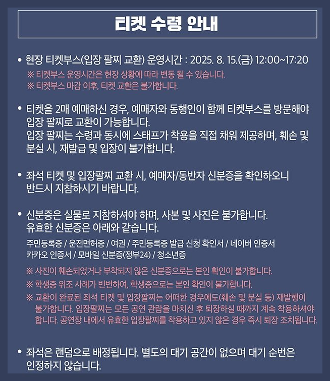 - 티켓 예매 오픈일: 2025년 8월 8일 (금) 낮 12시