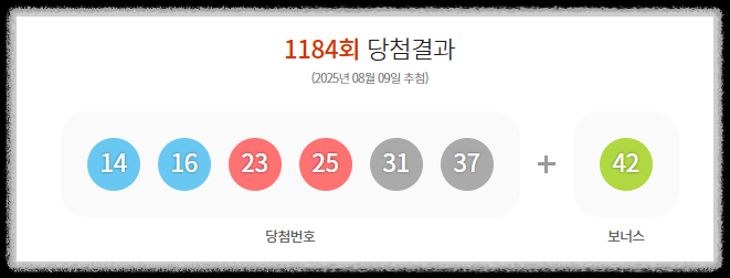 - 로또 1184회 당첨번호: 14, 16, 23, 25, 31, 37