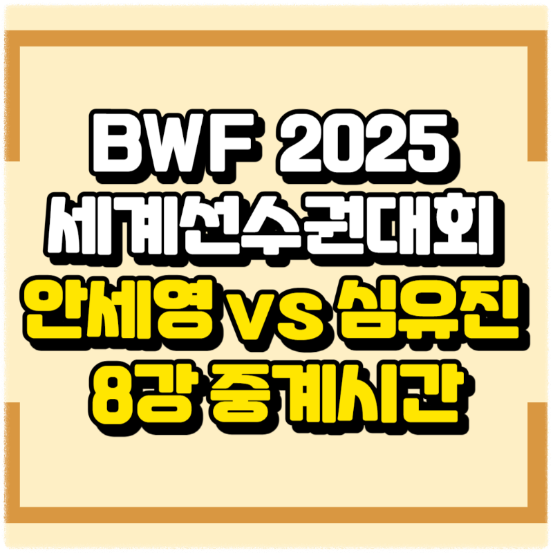 세계선수권대회 라이브 중계👉 안세영 16강 하이라이트 보기👉 SPOTV 편성표 보기 👉 BWF유튜브 바로가기 👉 위 버튼을 통해 바로 중계를 시청할 수 있습니다. 2025 BWF 세계선수권대회 개요 📅