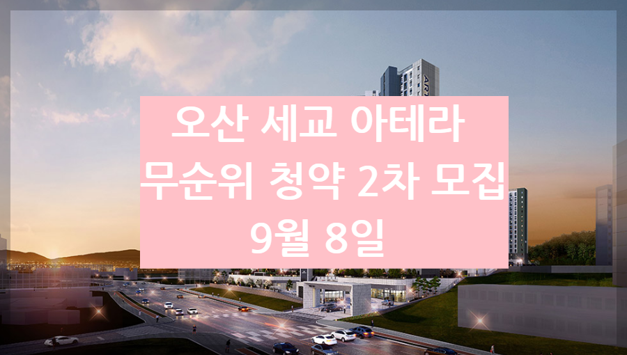 바로 오산 세교2지구의 '오산 세교 아테라'에서 2차 무순위 청약이 진행된다는 소식입니다!