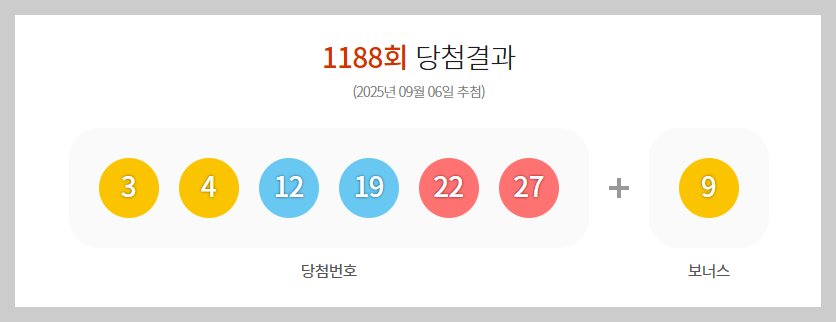 2025년 9월 6일 진행된 제1188회 로또 추첨 결과, 당첨번호가 공개되었습니다.