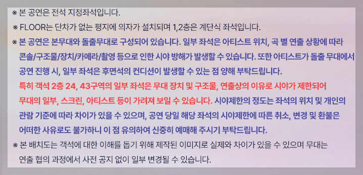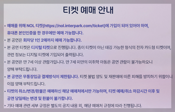 - 입장 시간: 공연 시작 1시간 30분 전부터 입장 가능