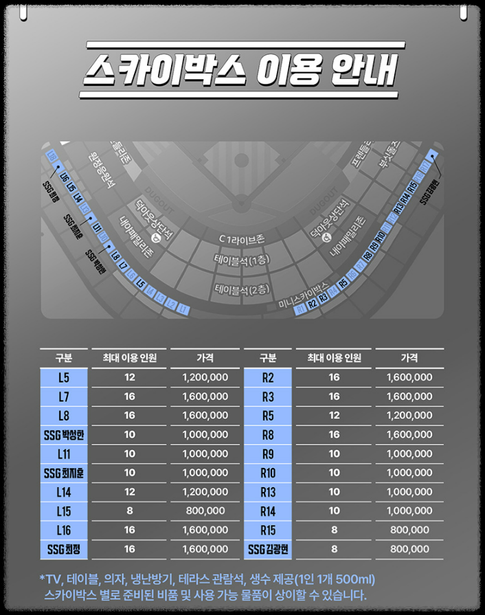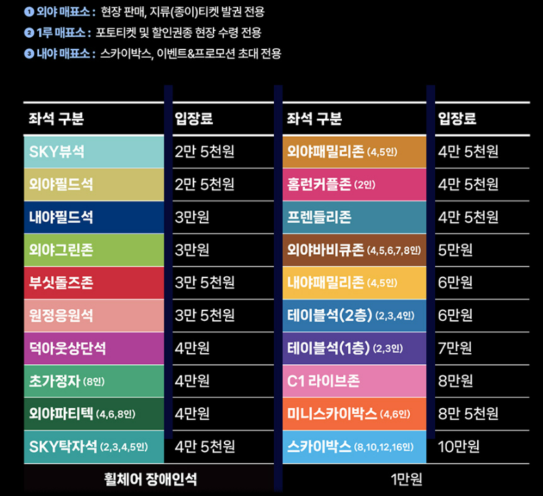 | 스카이박스 | 100,000원 | VIP 프리미엄석 |