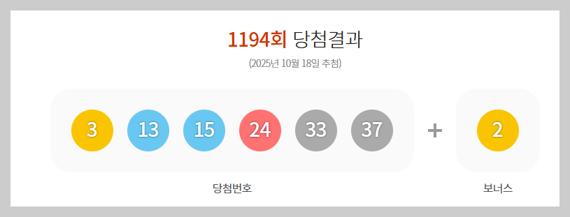 2025년 10월 18일(토)에 발표된 제1194회 로또 추첨 결과를 자세히 분석해보며, 1195회 예상번호까지 한눈에 정리해드립니다!