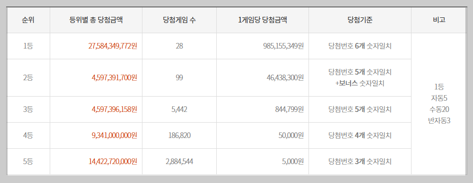 총 1등 당첨자 수: 28명
