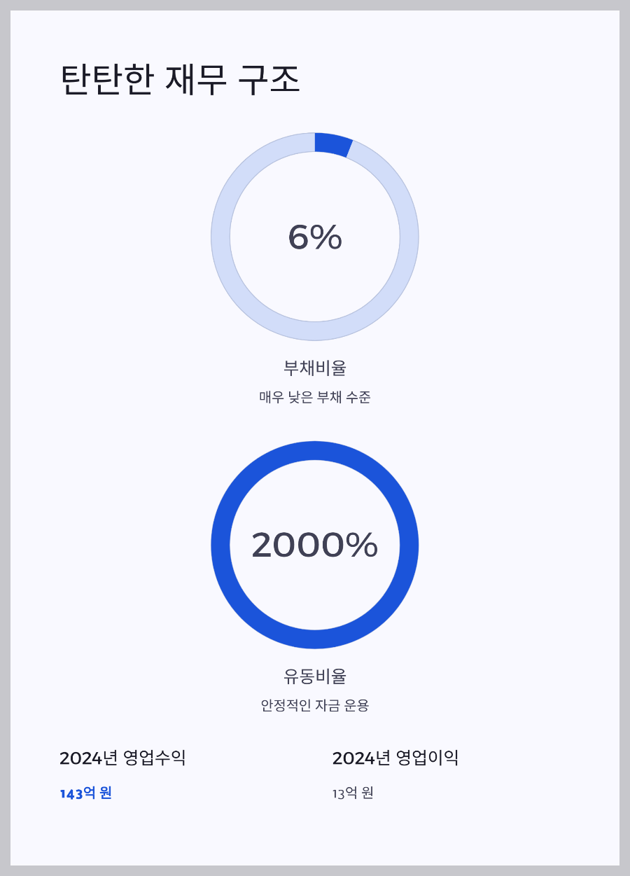- 실적: 2024년 영업이익 13억 원 (흑자 경영)