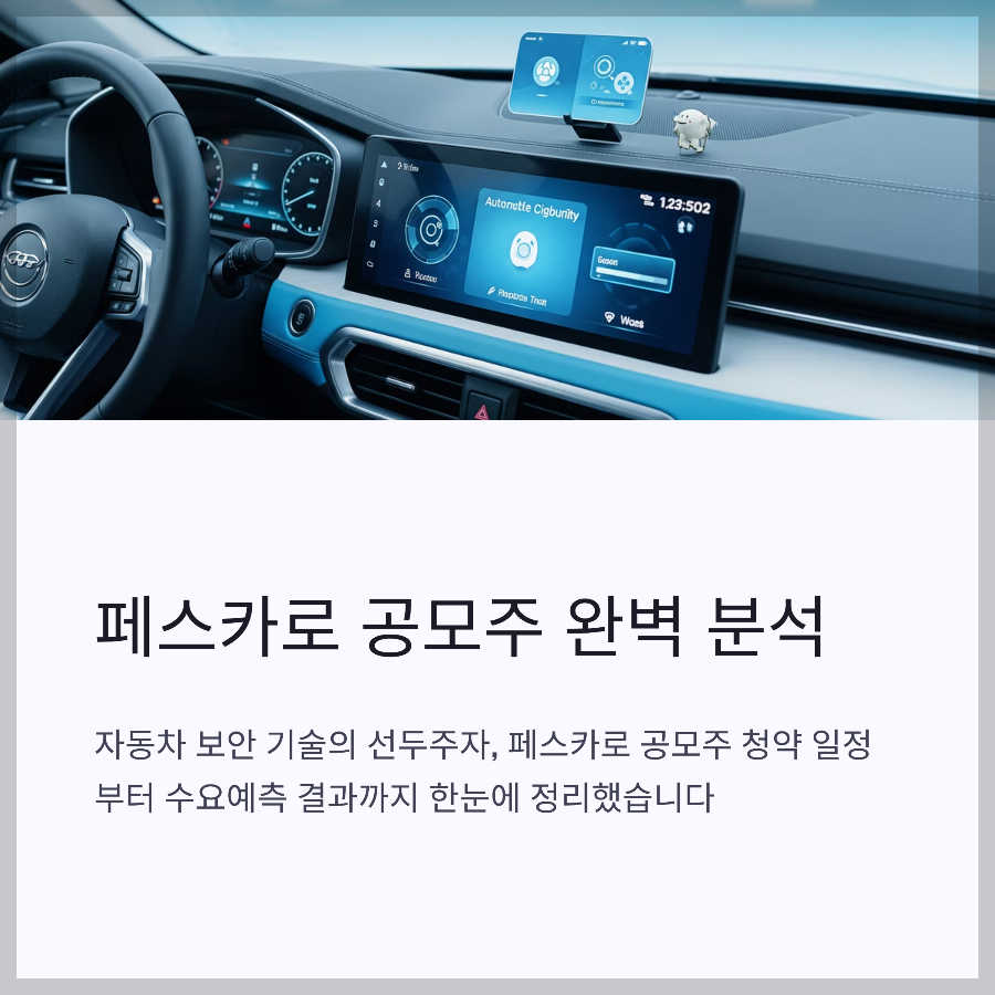 특히 "이 종목 놓치면 후회한다"는 말이 돌 정도로 뜨거운 감자가 하나 있었습니다. 바로 자동차 보안 전문 기업 '페스카로'인데요. 기관 수요예측에서부터 터져 나온 엄청난 열기가 일반 청약까지 고스란히 이어졌습니다